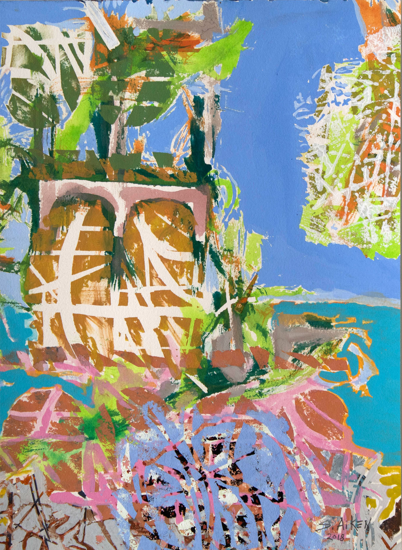 Additional information: “Untitled 10” is from El Zapote Gallery selection of Stephen Aiken’s abstract gouache paintings on paper, a series of artworks showing an abstract city landscape composition, depicting lush vegetation and gardens in Merida, we believe you are going to love it, think about having it on your own private collection.