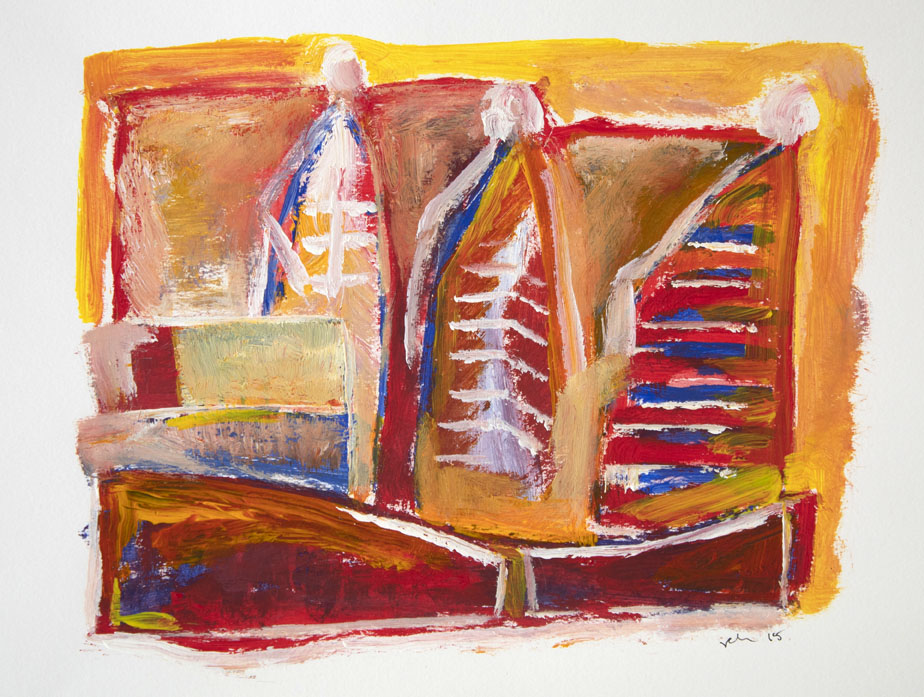 Additional artwork information: “Viajeros como Velas” is from El Zapote Gallery selection of Renato Chacon’s abstract landscape painting on paper artworks showing a group o traveling friends with sail boat shapes, we believe you are going to love it, think about having it on your own private collection.