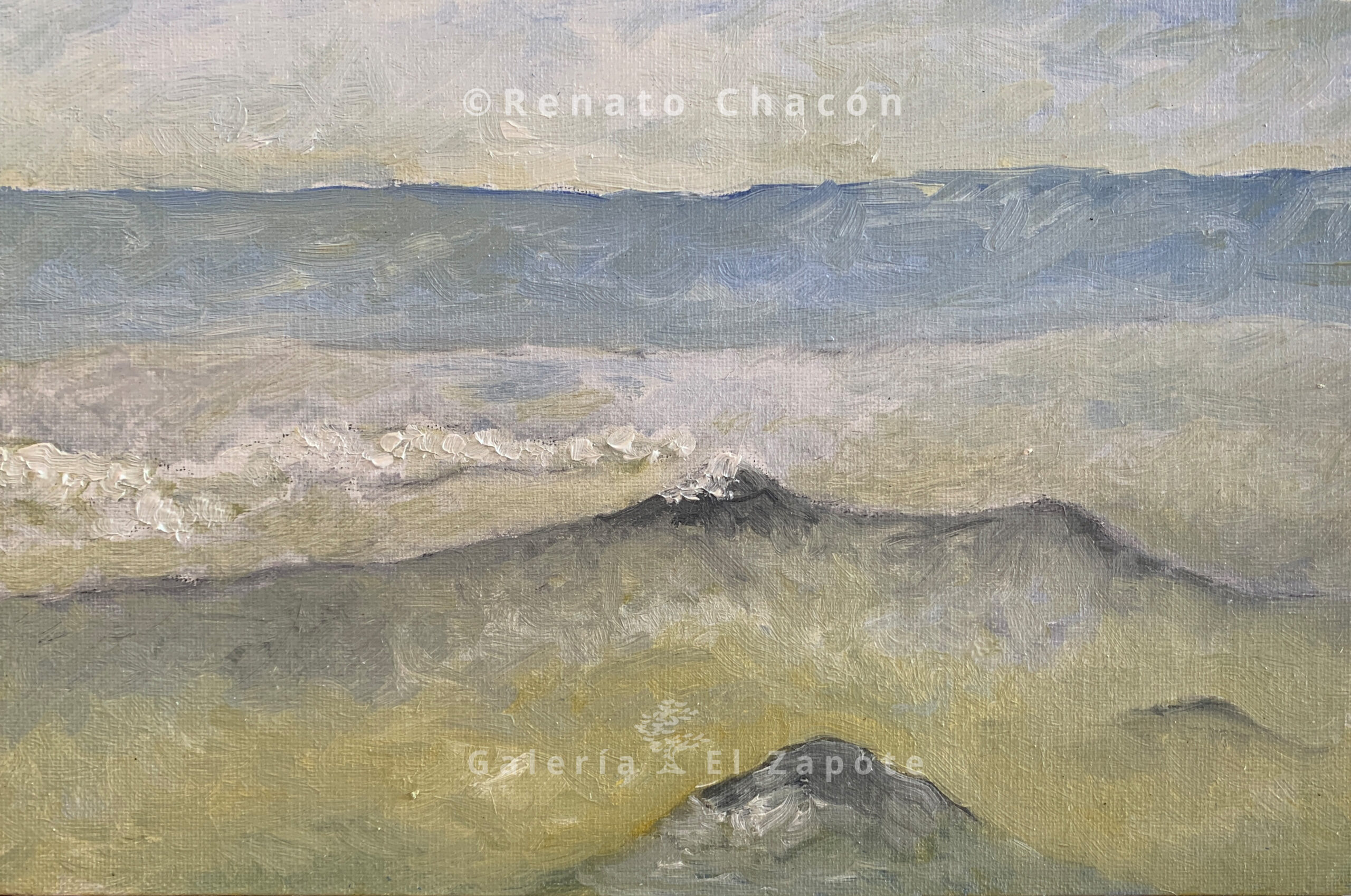 Additional artwork information: “Pico de Orizaba” is from El Zapote Gallery selection of Renato Chacon’s life painting, a series of oil paintings on panel, artwork depicting The Pico de Orizaba volcano, airview landscape, we believe you are going to love it, think about having it on your own private collection.