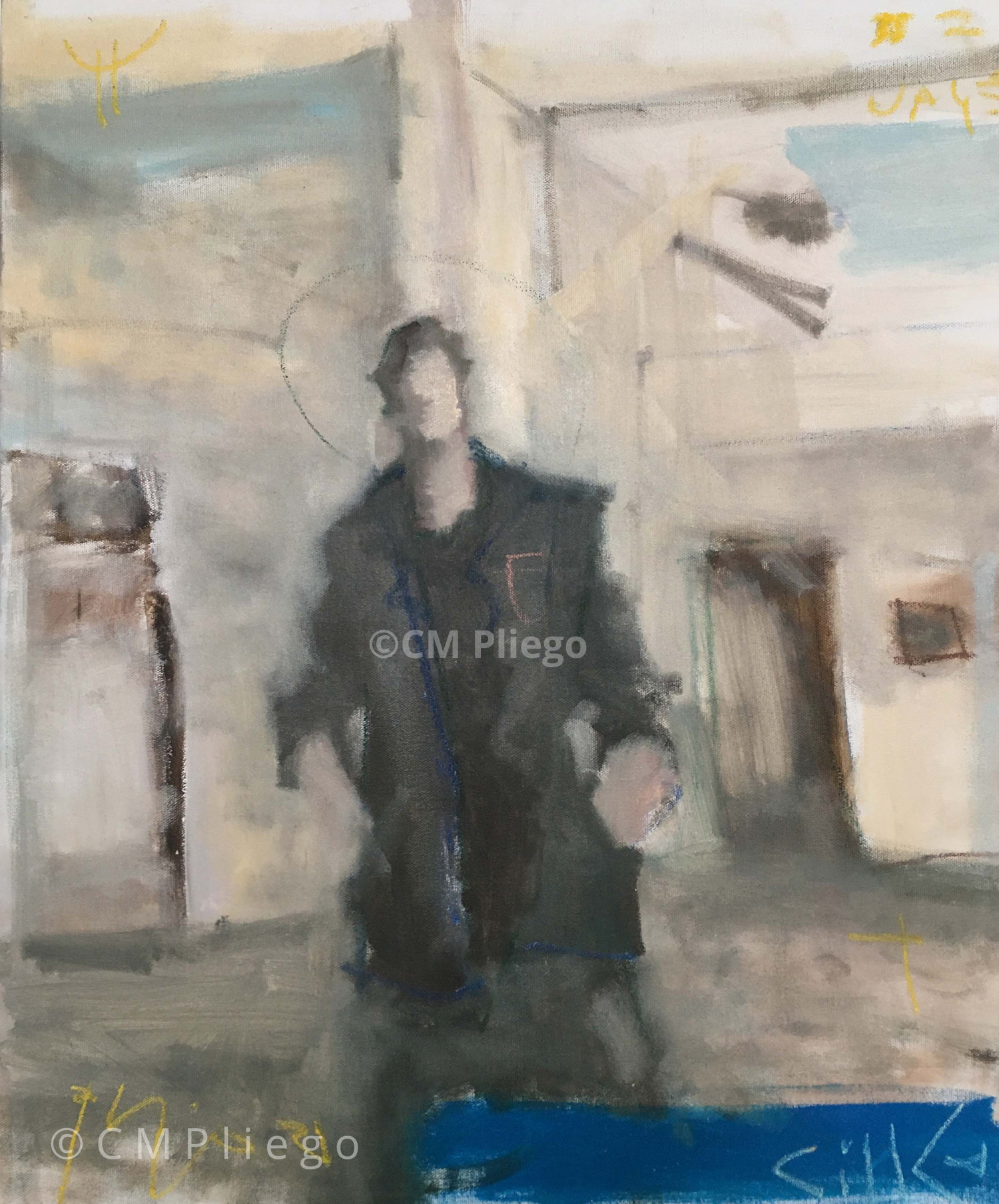 Additional artwork information: “El del saco” is from El Zapote Gallery selection of CM Pliego’s figurative self portrait painting, a series of paintings on canvas, artwork showing artist self portrait at his studio, we believe you are going to love it, think about having it on your own private collection.